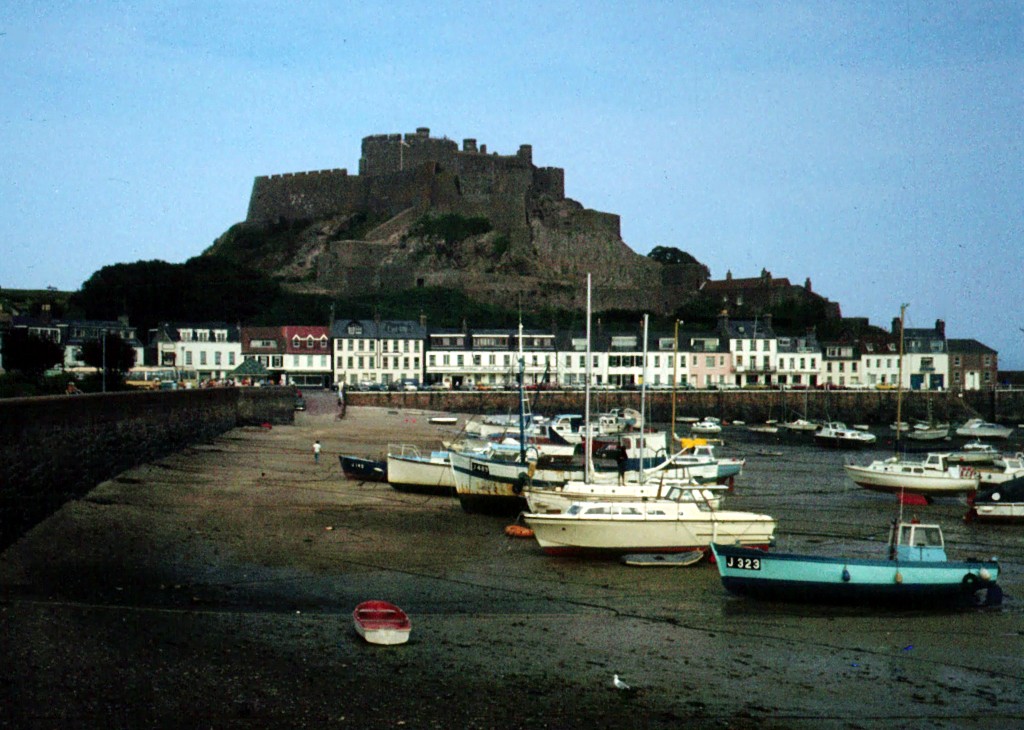 jersey-79-0150.jpg ( JPEG Image ) 08/15/2006 Jersey - GoreyBoats aground in Gorey harbour with Mount Orgueil Castle in the background.01-Jul-1979