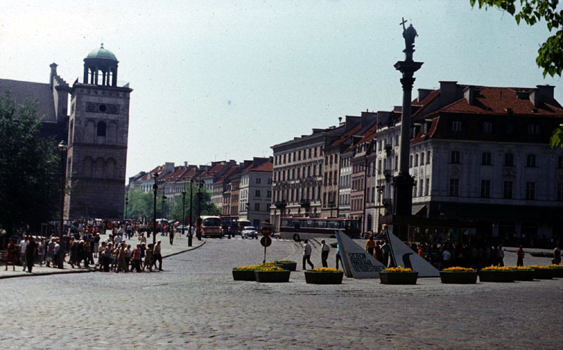 Warsaw (Stare Miasto) Krakowskie Przedmiescie 18-May-1975 A view along the street from the North side of the Plac Zamkowy. On the left can be seen the church of St. Anne and in the centre right the statue of King Sigismund III.