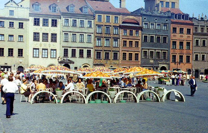 pl-0470.jpg ( JPEG Image ) 02/22/1998 Warsaw (Stare Miasto)Rynek St Miasta18-May-1975One of the open aire cafés in the square.