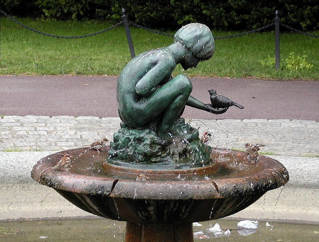 Statue and Bird Bath in Boston Public Garden