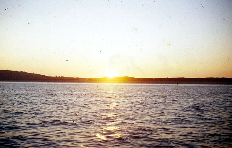 aug72-0690.jpg ( JPEG Image ) 01/09/1998 TenbyHoneymoon.Another view of the setting sun over the bay taken from the boat. This photo was taken through a Polaroid filter.